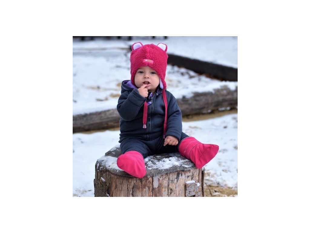 Teplá detská čiapka z fleecu pre najmenšie deti s predĺženou ochranou uší a šnúrkami na uviazanie pod bradou. Ochráni vaše dieťa pri všetkých aktivitách v chladnom zimnom počasí, je vhodná aj do silných mrazov. Krásne prekryje celé čelo a uši. Fleece Tecnopile® má skvelé termoizolačné vlastnosti, optimálnu priedušnosť a elasticitu. Je nedráždivý a veľmi jemný na dotyk, vhodný aj pre tie najmenšie deti. Nepremokne tak rýchlo ako bežná bavlna a veľmi efektívne udržuje teplo. Čiapka je dostupná v 2 veľkostiach (viď. tabuľka veľkostí) a má výšku 19cm. Je vhodná do kočíka, šatky aj nosiča.