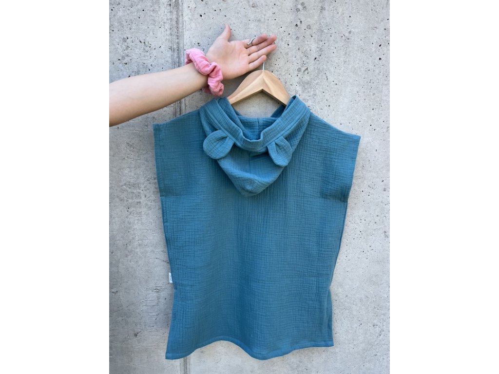 Pončo má zošité boky a hravo nahradí uterák aj župan. Má široké praktické využitie - dovolenka pri mori, letné kúpalisko, krytá plaváreň, prírodné jazerá, stanovčky a kempovačky, no rovnako výborne poslúži aj doma v kúpelni, či u babky na záhrade. Pončo je veľmi ľahké, rýchlo schne a po namočení nie je ťažké ako klasický uterák. Naše mušelínové pončá a osušky sú vyrobené z BIO organickej bavlny, ktorá je ešte šetrnejšia k citlivej detskej pokožke aj k prírode.