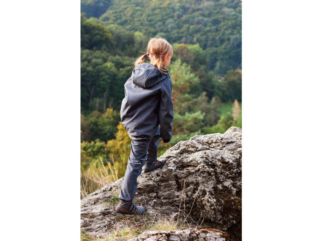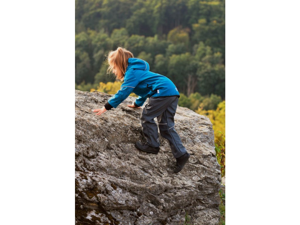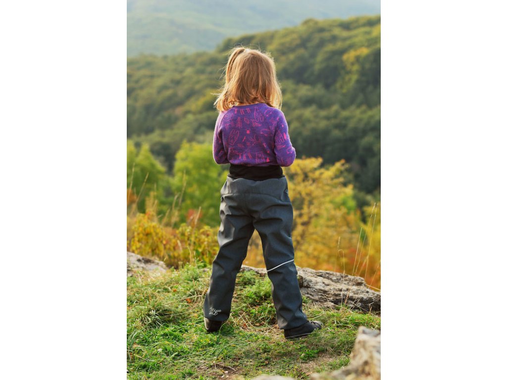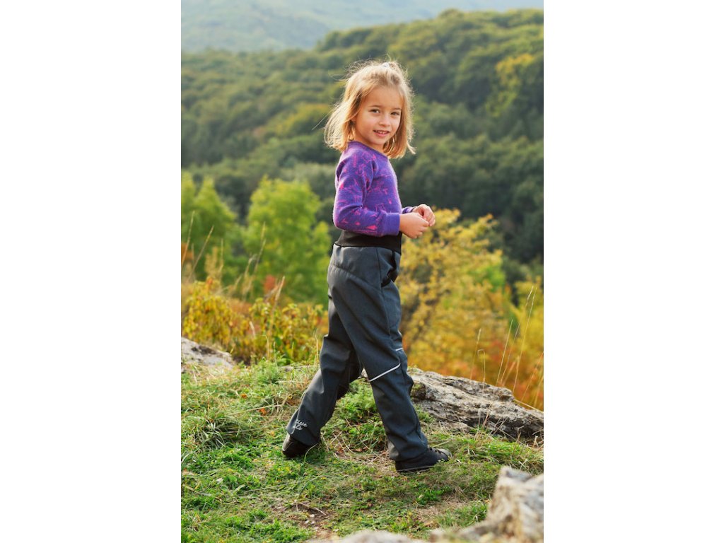 Detské softshellové nohavice, ktoré vďaka praktickému strihu doslova porastú s vaším dieťaťom. Obvod pásu viete nastaviť podľa potreby vďaka všitej regulovateľnej gume v 7cm vysokom pružnom náplete. Výborná ochranná vonkajšia vrstva do každého počasia na všetky outdoorové dobrodružstvá, no rovnako vhodné aj na cestu do škôlky či školy. Vnútorná časť je zateplená a podšitá fleecom. V kombinácii so spodnými nohavicami z merino vlny zvládnu nižšie teploty a dokonca aj suchú zimu. V týchto nohaviciach bude vaše dieťa chránené pred vetrom aj dažďom.